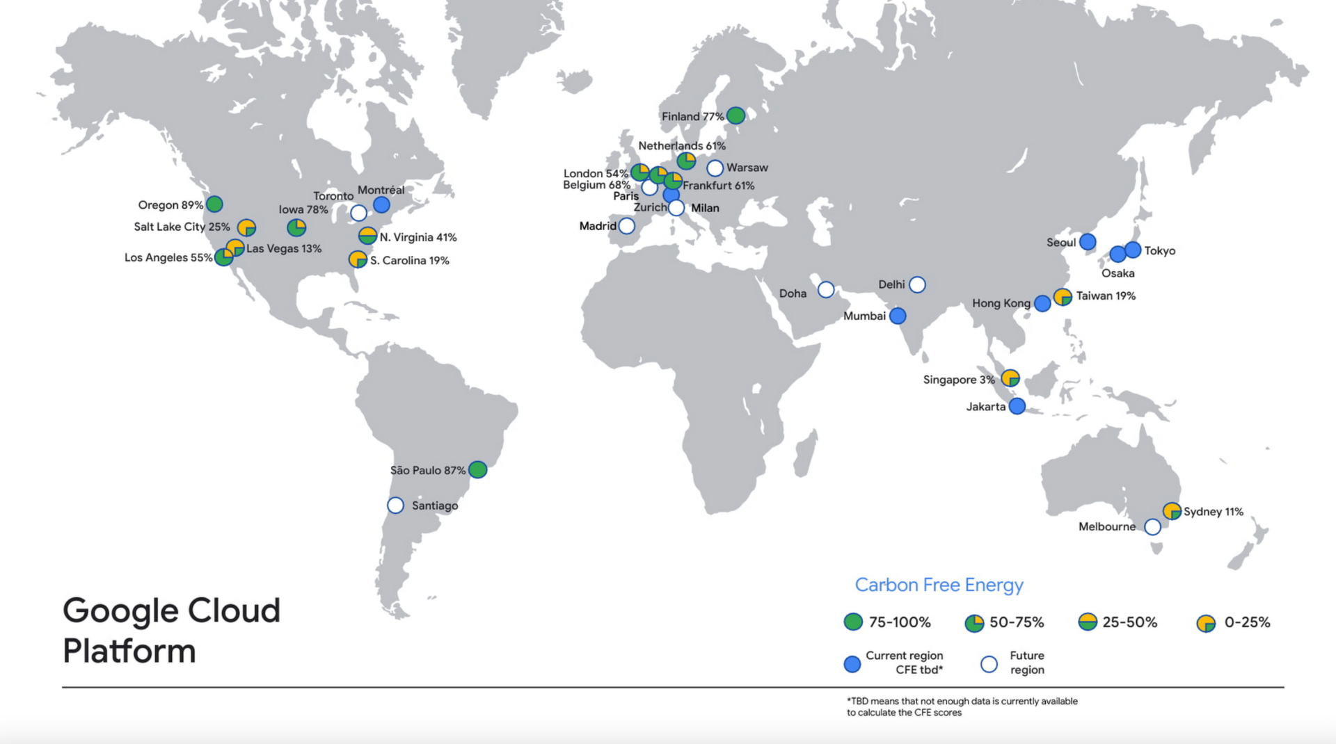 Completely decarbonizing our data center electricity supply is the critical next step in realizing a carbon-free future and supporting Google Cloud customers with the cleanest cloud in the industry. On the way to achieving this goal, each Google Cloud region will be supplied by a mix of more and more carbon-free energy and less and less fossil-based energy. We measure our progress along this path with our Carbon Free Energy Percentage (CFE%). Today we’re sharing the average hourly CFE% for the majority1 of our Google Cloud regions here and on GitHub